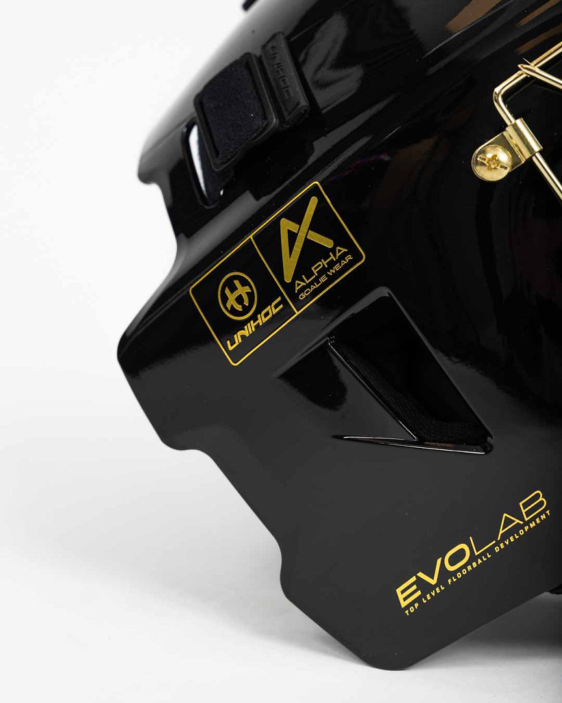 Die ALPHA-Maske gehört zur exklusiven Linie der ALPHA-Torwartausrüstung. Dies ist eine Top-Serie, die sich hauptsächlich auf Top-Torhüter konzentriert. Der Kopf muss jederzeit ein Höchstmaß an Sicherheit und Komfort bieten. Diese Maske vereint die bewährten Elemente und die Erfahrung der Torhüter in einer Einheit. Die Maske ist leicht und ermöglicht es Ihnen, Ihren Kopf schnell zu bewegen, um eine perfekte Sicht auf das Spiel zu erhalten. Abnehmbare Kissen werden in die Maske gelegt. Es schützt den Kopf vor Stößen und leitet Schweiß effektiv ab. Der Kinnschutz ist aus weichem Schaumstoff und ist verstellbar. Damit die Maske perfekt zu jedem Torwart passt, lässt sie sich mit fünf Schnallen an der Außenseite der Maske leicht einstellen.